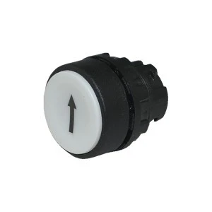 Napęd przycisku krytego, powrotnego serii CP z korpusami z tworzywa. Możliwość podświetlenia. Biały ze strzałką.