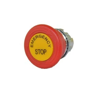 Napęd przycisku dłoniowego bezpieczeństwa, awaryjnego serii CM. Odblokowanie przez obrót. Z tabliczką opisową "Emergency Stop". Korpus metalowy. Średnica grzybka 40 mm. Czerwony.