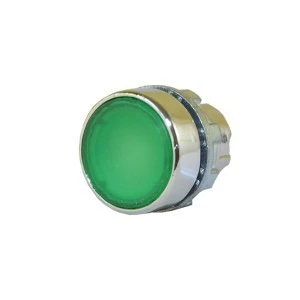 Napęd przycisku krytego, powrotnego serii CM z metalowymi korpusami. Możliwość podświetlenia. Zielony.