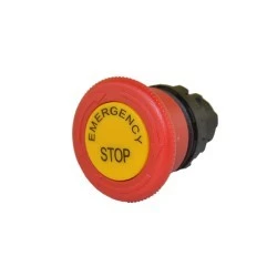 Napęd przycisku dłoniowego bezpieczeństwa, awaryjnego serii CP. Odblokowanie przez obrót guzika. Z tabliczką opisową "Emergency Stop". Korpus z tworzywa. Średnica grzybka 40 mm. Czerwony.