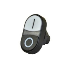 Napęd przycisku podwójnego, powrotnego serii CP. Korpus z tworzywa. Guziki kryte, czarny i biały. Możliwość podświetlenia.