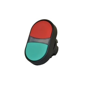 Napęd przycisku podwójnego, powrotnego serii CP. Korpus z tworzywa. Guziki kryte, czerwony i zielony. Możliwość podświetlenia.