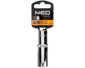 Nasadka dwunastokątna długa 1/2"" NEO (nr ref. 08-076) o rozmiarze 17 mm, o długości 77 mm, wykonana z wytrzymałej stali chromowo-wanadowej zgodnie z normą DIN 3124. Jakość narzędzia potwierdzona certyfikatem TUV i 25-letnią gwarancją producenta. Marka NEO spełnia oczekiwania profesjonalistów.