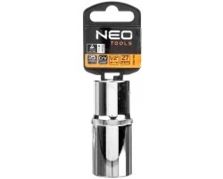 Nasadka dwunastokątna długa 1/2"" NEO (nr ref. 08-083) o rozmiarze 27 mm, o długości 77 mm, wykonana z wytrzymałej stali chromowo-wanadowej zgodnie z normą DIN 3124. Jakość narzędzia potwierdzona certyfikatem TUV i 25-letnią gwarancją producenta. Marka NEO spełnia oczekiwania profesjonalistów.