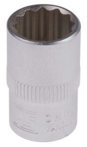 Gniazda Bi-Hexagon z napędem kwadratowym 3/8 in. Profesjonalne gniazda 3/8 w każdym 12-punktowym kwadratowym opakowaniu. Gniazda bez uderzeń Gładkie, piaskowane wykończenie Radełkowany uchwyt