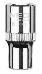 Nasadka sześciokątna 1/4"" NEO (nr ref. 08-224) o rozmiarze 6 mm, wykonana z wytrzymałej stali chromowo-wanadowej zgodnie z normą DIN 3124. Konstrukcja nasadki według technologii Superlock umożliwia odkręcanie uszkodzonych śrub oraz chroni śruby przed zniekształceniem. Jakość narzędzia potwierdzona certyfikatem TUV i 25-letnią gwarancją producenta. Marka NEO spełnia oczekiwania profesjonalistów.