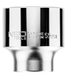 Nasadka sześciokątna 3/4"" NEO (nr ref. 08-340) o rozmiarze 55 mm, wykonana z wytrzymałej stali chromowo-wanadowej zgodnie z normą DIN 3124. Jakość narzędzia potwierdzona certyfikatem TUV i 25-letnią gwarancją producenta. Marka NEO spełnia oczekiwania profesjonalistów.