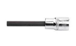 RS PRO 1/2" Drive Hexagon Bit Socket - Long. Introducing 1/2" drive hexagon long socket bits from our own brand RS PRO, a selection of high quality and reliable long bit sockets to choose from, designed for use with wrench and driving tools with a 1/2" drive. The hexagon bit is manufactured from chrome vanadium molybdenum and is fixed to the socket, providing a strong and reliable wrench socket accessory that can be used for various tasks to a high standard. The sockets are manufactured from chrome vanadium, providing a durable socket that can withstand extensive use in a range of working environments. The sockets also feature a mirror chrome finish offering a stylish and professional aesthetic whilst offering excellent corrosion resistance properties. RS PRO 1/2" socket bits are available in a variety of metric sizes and make an excellent addition to any socket set, ideal for applications requiring nuts and bolts with a hex socket recess to be tightened and loosened by hand. The hexagonal bit head will fit securely inside, similar to a hex key, enhancing the grip and torque whilst allowing you to work quickly with ease. The long steel bit is also perfect for tightening or loosening fasteners that are in hard to reach places or recessed that standard socket bits can't access. Features and Benefits. Available in a variety of sizes ranging from 6 mm to 12 mm Manufactured from chrome vanadium steel offering enhanced strength and durability Mirror chrome finish providing a professional aesthetic with corrosion resistance Suitable for a wide range of applications Hexagonal bit head to provide a secure grip and torque with recessed nuts and bolts Suitable for 1/2 drive wrenches. Application. Socket bits and socket accessories offer increased versatility without the need for the user to purchase new and more expensive tools, making such accessories a cost-effective solution when requiring tools that need to be used on various applications. It makes it easy to maximise the potential usage of ratchet spanners, extension bars, sockets and impact / power tools. Sockets and socket accessories are commonly used in a wide range of applications including: Mechanical / Automotive Construction Engineering DIY Maintenance and repair. FAQs. Why use a socket wrench and socket bit rather than a hex key?. Although they can be used for similar applications, using a socket and wrench has many advantages. The use of interchangeable sockets ensures that only one wrench is required to work with various sized fasteners, saving both time and money. The 6-point head also ensures a secure and reliable connection to the fastener with each point producing a strong grip with increased torque. The combination of a wrench and socket bit provides a much more versatile hand tool that can be used in a wide range of applications. What sizes are available?. RS PRO long socket bits are available in the following sizes: ; 1923788 1923788 - 6 MM ; 1923791 1923791 - 8 MM ; 1923793 1923793 - 10 MM ; 1923795 1923795 - 12 MM. What is the overall length of the socket bit?. The overall length of the RS PRO socket bits in this range is 100 mm.