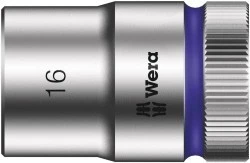 Klucz nasadowy firmy Wera (ISO 2725-część 3) do stosowania ręcznego oraz maszynowego. System oznaczenia kolorystycznego kluczy według rozmiaru "Take it easy" ułatwiający i przyspieszający odnajdywanie właściwego narzędzia. Poręczny kształt umożliwiający chwytanie nawet zabrudzonymi smarem rękami. Z rowkiem ustalacza kulkowego. Do śrub i nakrętek z łbem sześciokątnym. Ze stali chromowo-wanadowej, chromowany matowo.