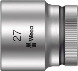 Klucz nasadowy firmy Wera (ISO 2725-część 3) do stosowania ręcznego oraz maszynowego. System oznaczenia kolorystycznego kluczy według rozmiaru "Take it easy" ułatwiający i przyspieszający odnajdywanie właściwego narzędzia. Poręczny kształt umożliwiający chwytanie nawet zabrudzonymi smarem rękami. Z rowkiem ustalacza kulkowego. Do śrub i nakrętek z łbem sześciokątnym. Ze stali chromowo-wanadowej, chromowany matowo.