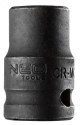 Nasadka udarowa 12 mm, 1/2"" NEO (nr ref. 12-212). Wykonana z wytrzymałej stali chromowo-molibdenowej. Pogrubione ścianki nasadki gwarantują jej wysoka wytrzymałość. Marka NEO spełnia oczekiwania profesjonalistów.