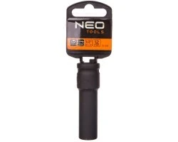 Nasadka udarowa 12 mm długa, 1/2"" NEO (nr ref. 12-312). Wykonana z wytrzymałej stali chromowo-molibdenowej. Pogrubione ścianki nasadki gwarantują jej wysoka wytrzymałość. Większa długość nasadki umożliwia dostęp do głębokich gniazd śrub. Marka NEO spełnia oczekiwania profesjonalistów.