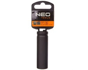 Nasadka udarowa 15 mm długa, 1/2"" NEO (nr ref. 12-315). Wykonana z wytrzymałej stali chromowo-molibdenowej. Pogrubione ścianki nasadki gwarantują jej wysoka wytrzymałość. Większa długość nasadki umożliwia dostęp do głębokich gniazd śrub. Marka NEO spełnia oczekiwania profesjonalistów.