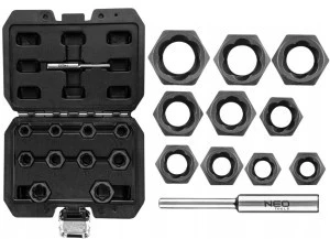 Nasadki, do uszkodzonych nakrętek. Wewnętrzna spirala powoduje samoczynne zaciskanie się na uszkodzonej śrubie/nakrętce umożliwiając bezpieczne odkręcenie. Marka NEO spełnia oczekiwania profesjonalistów.