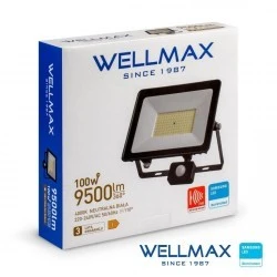 Naświetlacz WELLMAX LED SAMSUNG 100W 9500lm PIR Barwa Neutralna Biała 4000K z Czujnikiem Ruchu i Światła