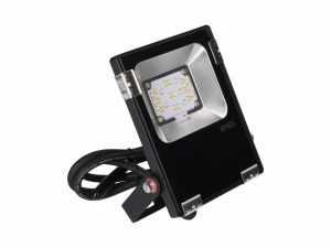 Nowoczesny naświetlacz LED FUTT05 marki Mi-Light to inteligętne źródło światła LED w wesji RGB+CCT o mocy 10W które możemy podłączyć bezpośrednio do sieci 86-265V ACHALOGEN LED emituje kolorowe światło RGB oraz barwę białą od 2700K do 6500K(ciepła/zimna), zaś strumień świetlny wynosi od 750lm do 900lm. Materiały wykorzystane do produkcji lampy zewnętrznej gwarantują nam wysoki poziom wodoodporności IP65. Naświetlacz Floodlight pracuje w standardzie 8-strefowym dodatkowo umożliwia nam płynną regulację jasności, koloru światła, saturacji oraz temperatury barwowej światła białego. Naświetlacz możemy sterować za pomocą pilota lub darmowej aplikacji mobilnej do której wymagane jest zastosowanie mostka Wi-Fi iBOX