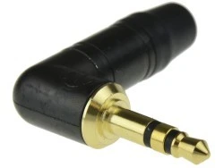 Profesjonalny, solidnie wykonany, złocony, kątowy wtyk Jack Stereo 3,5mm (tzw. mały jack) marki NEUTRIK.