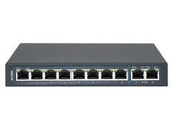 Switch niezarządzalny posiadajacy 8 portów RJ45 PoE 100Mb/s oraz 2 porty RJ45 Uplink 1Gb/s. Zaprojektowany z myślą o systemach monitoringu IP. Niezawodny i uniwersalny, umożliwia transmisję danych i zasilanie 8 kamer IP PoE. 2 porty RJ45 typu Uplink umożliwiają rozbudowę, łączenie różnych systemów sieci LAN albo tworzenie systemów monitoringu, gdzie jeden port obsługuje rejestrator CCTV a drugi port poprzez modem podpięty do sieci internetowej WAN umożliwa komunikację zewnętrzną.