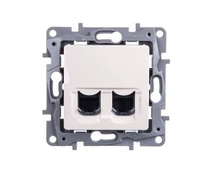 Nowoczesna linia Niloe opiera się na tradycyjnym oraz eleganckim osprzęcie, na przykład na łącznikach, gniazdach oraz ramkach. Kolekcja została wyprodukowana przez znany i ceniony koncern Legrand. Marka jest uznawana za jednego z czołowych producentów aparatury zabezpieczeniowej niskiego napięcia. Konstruktorzy oraz projektanci marki pracują na zaufanie swoich klientów już od 1996 roku. Prezentowane gniazdo należy do kategorii gniazd telefonicznych oraz informatycznych. Wyposażono je w dwa styki zaciskane RJ45, a także przypisano do kategorii szóstej. Zgodnie z zaleceniami producenta, gniazdo jest przeznaczone do trwałej instalacji podtynkowej za pomocą bezpiecznej i sprawdzonej metody na pazurki poprzez śruby lub zatrzaski. Ponadto gniazdu został przypisany stosunkowo niski stopień ochrony - IP21. Oznacza to, że osprzęt powinien być raczej instalowany w suchych, zamkniętych pomieszczeniach. Prezentowany produkt pracuje przy temperaturze od -5°C do +35°C. Dostępny jest w uniwersalnym, kremowym kolorze.