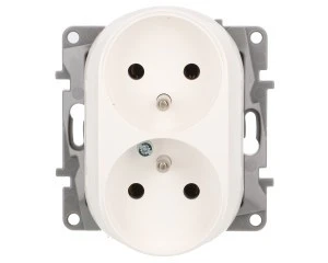 NILOE Gniazdo podwójne z/u 16A bez przesłon, zaciski śrubowe, białe 764562