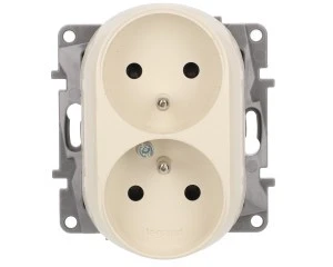 Gniazdo podwójne z uziemieniem niloe w kolorze kremowym z możliwością łączenia z ramką podwójną w jednym z kilku dostępnych kolorów. Produkt trwały, łatwy w montażu, przystępny cenowo.