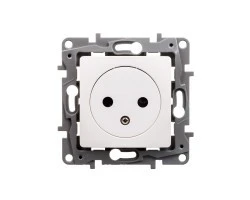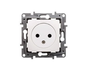 Gniazdo pojedyncze z uziemieniem płaskie niloe wyposażone w przesłony torów w kolorze białym z możliwością łączenia z ramką w jednym z kilku dostępnych kolorów. Produkt trwały, łatwy w montażu, przystępny cenowo.