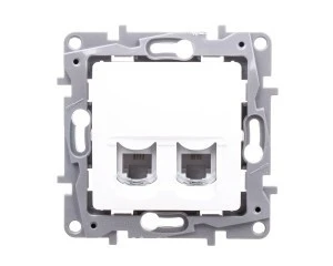 Gniazdo podwójne RJ11 niloe w kolorze białym z możliwością łączenia z ramką w jednym z kilku dostępnych kolorów. Produkt trwały, łatwy w montażu, przystępny cenowo.