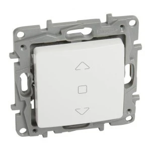 Przycisk do bezpośredniego sterowania roletami niloe w kolorze białym z możliwością łączenia z ramką w jednym z kilku dostępnych kolorów. Produkt trwały, łatwy w montażu, przystępny cenowo.