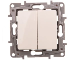 Przycisk podwójny niloe w kolorze kremowym z możliwością łączenia z ramką w jednym z kilku dostępnych kolorów. Produkt trwały, łatwy w montażu, przystępny cenowo.