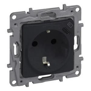 Niloe Selection Gniazdo 2p+z płaskie 16A 250V + USB typ c w plakietce (z przesłoną, zaciski automatyczne) antracyt 762296