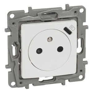 Niloe Selection Gniazdo 2p+z płaskie 16A 250V + USB typ c w plakietce (z przesłoną, zaciski automatyczne) białe 764536