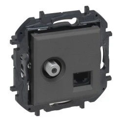 Simon 55 Gniazdo komputerowe pojedyncze RJ45 kategoria 6, z przesłoną przeciwkurzową (moduł) Czarny mat T61.01/149