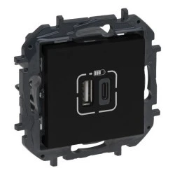 NILOE STEP‑ GNIAZDO USB 3A TYP A+C MECHANIZM Z PLAKIETKĄ ‑ KOLOR CZARNY