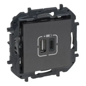 Simon 54 Ładowarka USB C+A (moduł), 30 W, 230V czarny DEC2CAQ.01/49