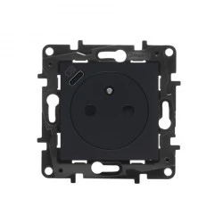 Niloe Step - Gniazdo 2P+Z 16 A - 230 V~ + ładowarka USB typ C - 1500 mA - z przesłoną, zaciski automatyczne - Czarne