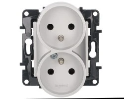 Niloe Step Gniazdo zasilające podwójne 2x2P+Z do ramek wielokrotnych, zaciski śrubowe, bez przesłony styków aluminium 863332