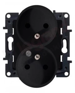 Niloe Step Gniazdo zasilające podwójne 2x2P+Z do ramek wielokrotnych, zaciski śrubowe, bez przesłony styków czarny 863532