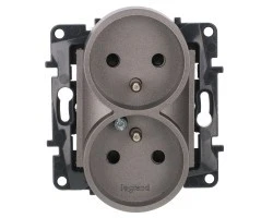 Niloe Step Gniazdo zasilające podwójne 2x2P+Z do ramek wielokrotnych, zaciski śrubowe, bez przesłony styków aluminium 863332