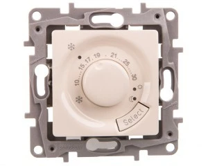 Termostat obrotowy niloe w kolorze kremowym z możliwością łączenia z ramką w jednym z kilku dostępnych kolorów. Produkt trwały, łatwy w montażu, przystępny cenowo.