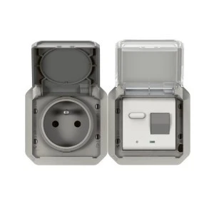 NOWE PLEXO 55 Gniazdo 2P+Z zaciski auto komplet natynkowy 16A - 250V AC szare 069731L