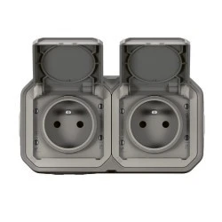Wodoodporne podwójne gniazdo natynkowe Plexo może być używane do podłączania sprzętu elektrycznego lub elektronicznego w dowolnym miejscu, w którym wymagana jest odporność na wodę, kurz i uderzenia. Do użytku wewnątrz i na zewnątrz budynków. Kolor szary.