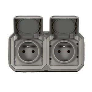 NOWE PLEXO 55 Gniazdo 2x2P+Z poziome komplet natynkowy 16A ‑ 250V AC szare 069768L