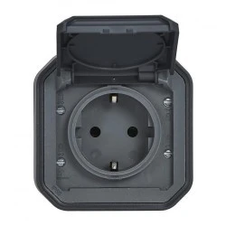 NOWE PLEXO 55 Gniazdo Schuko 2P+Z zaciski auto komplet natynkowy 16A ‑ 250V AC antracyt 069799L