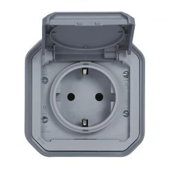 NOWE PLEXO 55 Gniazdo Schuko 2P+Z zaciski auto komplet natynkowy 16A ‑ 250V AC szare 069730L