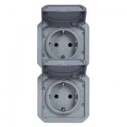NOWE PLEXO 55 Gniazdo schuko 2x2P+Z pionowe mechanizm 16A ‑ 250V AC szare 069577L