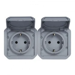 NOWE PLEXO 55 Gniazdo schuko 2x2P+Z poziome mechanizm 16A ‑ 250V AC szare 069576L