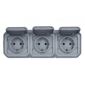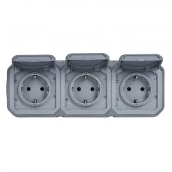 NOWE PLEXO 55 Gniazdo schuko 3x2P+Z poziome komplet natynkowy 16A ‑ 250V AC szare 069743L