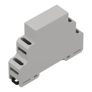 Obudowy modułowe na szynę DIN - są to obudowy dostosowane do montażu na szynach DIN. Występują one w kolorze jasnoszarym. Tworzywo z jakiego je wykonujemy to polistyren, ABS oraz ABS V0 (samogasnący). Istnieje także możliwość zakupu tych obudów z filtrami transparentnymi w kolorze czerwonym zamiast jasnoszarego panelu górnego. Kliknij i zobacz inne obudowy tej serii: