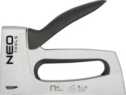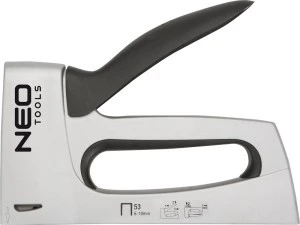 Zszywacz tapicerski NEO (nr ref. 16-015) na zszywki typ J, o rozmiarze od 6 do 10 mm. Obudowa wykonana z wytrzymałego stopu aluminium. Ergonomiczny i wytrzymały uchwyt metalowy jest pokryty tworzywem dla wyższego komfortu pracy. Wysunięty wbijak umożliwia precyzyjne określenie miejsca wbijania zszywek. Doskonale sprawdza się przy pracach tapicerskich, dekoratorskich, mocowaniu folii, skóry. Precyzyjnie dobija zszywki bez zgniatania ich, nawet w twarde materiały. Gwarantem wysokiej jakości i niezawodności produktu jest certyfikat TUV Rheinland. Marka NEO spełnia oczekiwania profesjonalistów.