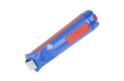 Haczykowe ostrze noża ustawia się samoczynnie w kierunku cięcia. Czerwono-niebieska obudowa produktu została zrobiona z wysokiej jakości tworzywa, które jest szczególnie odporne na działanie bodźców zewnętrznych. Skutecznie chroni przed ewentualnymi uszkodzeniami mechanicznymi. Nóż monterski typu AM 1/8-27 jest dostępny w wersji o 125 mm długości, natomiast średnica zewnętrzna obrabianego przewodu aluminiowego powinna wynosić 27 mm.